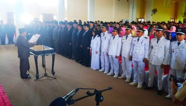 Taliwang, Fokus NTB – Sebanyak 277 Aparatus Sipil Negara ASN) lingkup Pemerintah Kabupaten Sumbawa Barat (KSB) dimutasi. Mutasi dipimpin langsung Bupati Sumbawa Barat, Dr. Ir. H. W Musyafirin, M.M yang dilaksanakan di Aula Gedung Graha Praja, Senin pagi (7/01/20). Mutasi di awal tahun 2020 menyasar 14 Jabatan Pimpinan Tinggi (JPT) Pratama, 68 Administrator dan 195 Pengawas. Dari mutasi ini, ada pejabat yang di promosi atau naik jabatan, yakni tiga orang di tataran JPT Pratama, 16 jabatan Administrator dan 37 jabatan Pengawas. Sisanya dilantik karena pergesaran dan pengukuhan karena adanya perubahan nomenklatur atau nama baru OPD.