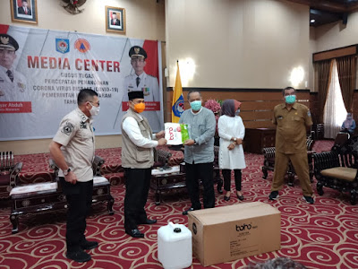Mataram, Fokus NTB – Pemerintah Nusa Tenggara Barat memberikan bantuan Alat Pelindung Diri (APD) dan hand sanitizer ke pemerintah kota Mataram. Penyerahan secara simbolik dilakukan Kepala BPBD NTB H. Ahsanul Khalik pada Asisten II Setda Mataram H. Mahmudin Tura, disaksikan Kepala BPBD Mataram Mahfudin Noor di Aula Pendopo Walikota Mataram (27/4/2020).