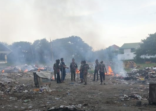 Sumbawa, Fokus NTB – Organisasi masyarakat Laskar Merah Putih (LMP) Sumbawa gelar gotong royong membersihkan sisa puing sampah bekas pasar Kerato (18/4). Gotong royong pembersihan ini dilakukan paska pemindahan pedagang pasar Kerato ke pasar Seketeng. Setelah pemindahan tersebut, eks pasar Kerato menyisakan sampah yang berserakan.