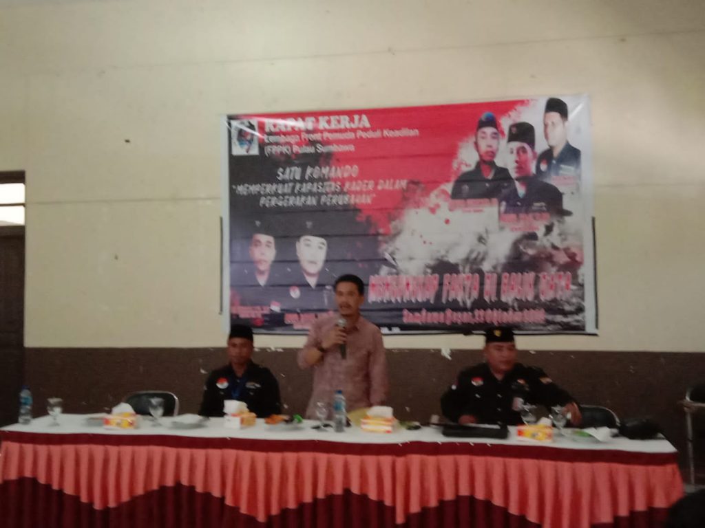 Sumbawa, Siasat.ID – Dalam rangka memperkuat semangat kader, Lembaga Swadaya Masyarakat (LSM) Front Pemuda Peduli Keadilan (FPPK) Pulau Sumbawa mengelar Rapat Kerja tahunan, Sabtu (22/10) di Aula Hotel Cendrawasih Kelurahan Brang Biji, Kabupaten Sumbawa. Rapat Kerja mengusung tema “Satu Komando Memperkuat Kapasitas Kader Dalam Pergerakan Perubahan”.