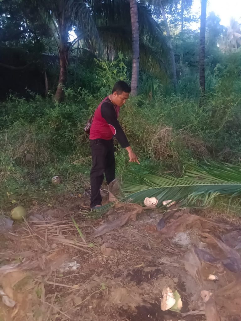 Kapolsek mengatakan, kronologis kejadiannya penemuan mayat yaitu pada hari Minggu sekitar Pukul 15.30 wita, korban MS. Berangkat dari rumah seorang diri guna mencari daun kelapa yang muda (janur) di kebun milik Lasalip.