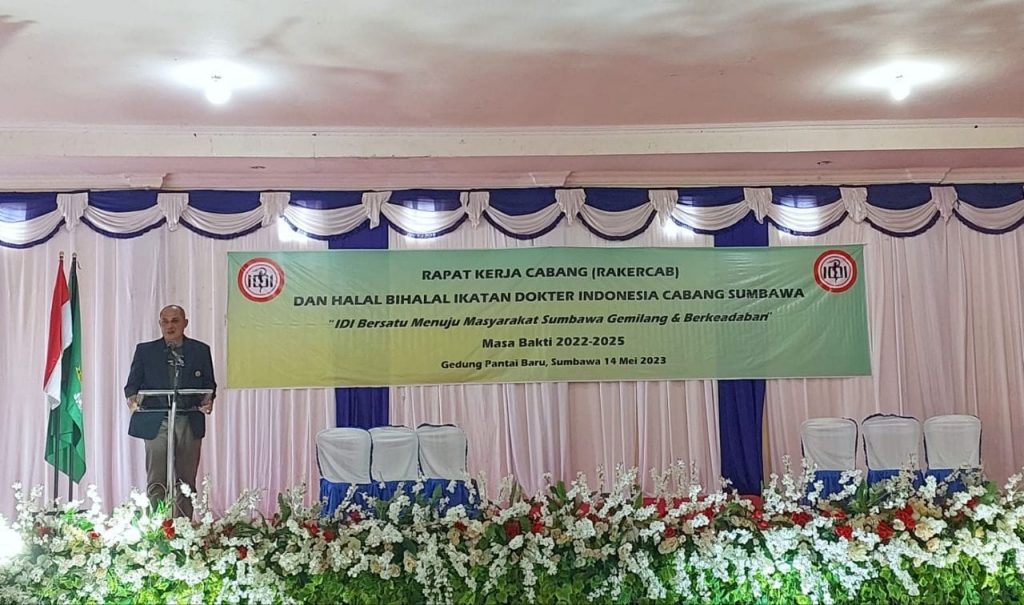 Sumbawa, Siasat. ID – Ikatan Dokter Indonesia (IDI) Cabang Sumbawa melaksanakan rapat kerja cabang (Rakercab) yang dilanjutkan dengan halal bihalal. Acara yang mengusung tema “IDI Bersatu Menuju Masyarakat Sumbawa Gemilang dan Berkeadaban” dihadiri oleh Pengurus IDI dan Anggota IDI Sumbawa, yang dilaksanakan di Gedung Pantai Baru, Labuhan Sumbawa, Minggu (14/5/2023).