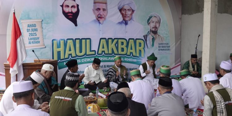 Maros, Siasat ID – Langgar Al Khidir di Perumahan Pesona Adnin Tenri Gankae, Kabupaten Maros, Sulawesi Selatan, dipadati lebih dari 300 jamaah dari berbagai daerah pada Minggu (1/6/2025). Mereka hadir untuk mengikuti Haul Tiga Ulama Besar yang digelar oleh Yayasan Al Khidir Balya Malkan, mengusung tema “Meneladani Ulama, Merawat Warisan Spiritual Nusantara.”