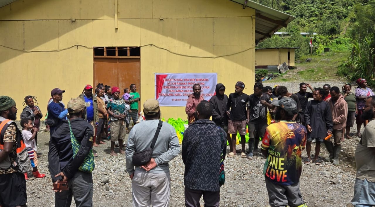 TIMIKA, Siasat ID — Para tokoh di Kampung Kimbeli, Distrik Tembagapura, Kabupaten Mimika, Provinsi Papua Tengah, melaksanakan kegiatan bakti sosial dan doa bersama sebagai bentuk dukungan terhadap pemerintah dalam menciptakan wilayah yang aman dan kondusif menjelang perayaan Natal dan Tahun Baru 2025.