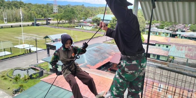 Mimika, Siasat ID – Komando Distrik Militer (Kodim) 1710 Mimika menyelenggarakan kegiatan pendalaman materi mountaineering dan rappelling bagi anggota Satuan Karya Wira Kartika (SWK). Kegiatan ini dilaksanakan di Markas Batalyon Infanteri (Yonif) 754/Eme Neme Kangasi (ENK) dalam rangka memperingati Hari Ulang Tahun (HUT) ke-18 SWK (2/11).