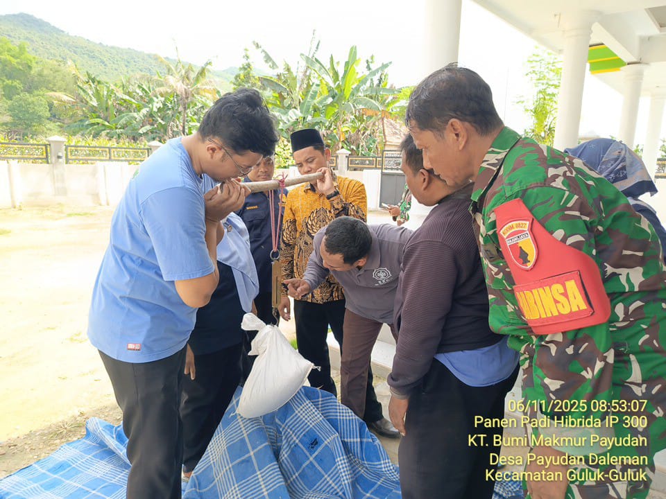 Sumenep, Siasat ID – Balai Penyuluhan Pertanian (BPP) Konstratani Kecamatan Guluk-Guluk sukses melaksanakan panen perdana padi Indeks Pertanaman (IP) 300 varietas padi Hibrida di lahan Kelompok Tani Bumi Makmur Payudan, Dusun Daleman, Desa Payudan Daleman, Kecamatan Guluk-Guluk, Kamis (6/11/2025).