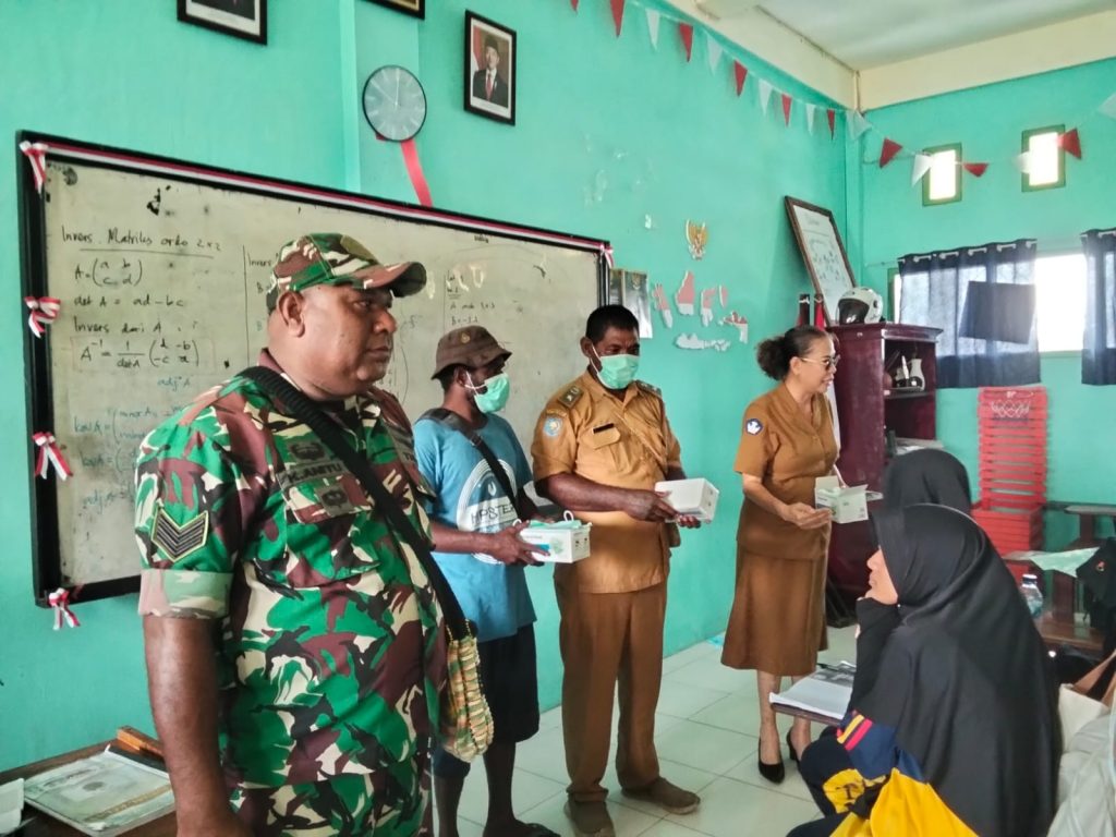 Apa yang dilakukan para medis dan dewan guru di kampung Nawaripi sebagai kerja kemanusiaan yang tahan banting . Meski situasi lagi tidak bagus tapi aktivitas belajar mengajar tetap berjalan .