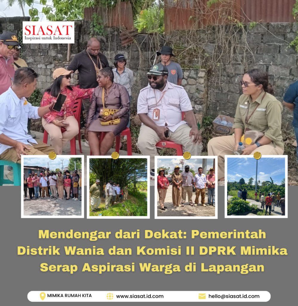 Wania, Mimika — Pemerintah Distrik Wania bersama Komisi II DPRK Kabupaten Mimika melaksanakan peninjauan lapangan dan dialog langsung dengan masyarakat di sejumlah titik wilayah Distrik Wania, Kabupaten Mimika, pada hari ini. Kegiatan ini dilakukan sebagai bentuk komitmen bersama untuk menyerap aspirasi masyarakat secara langsung dan melihat kondisi riil pelayanan serta infrastruktur di lapangan.