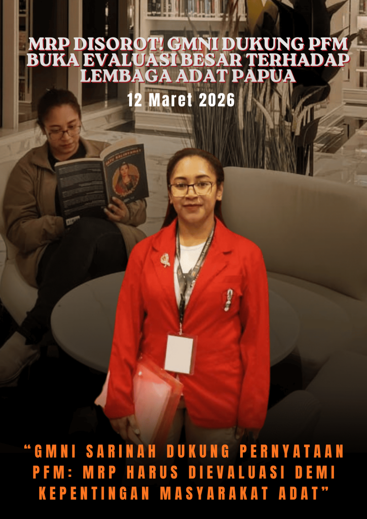 JAKARTA, 12 MARET 2026 – Ketua DPP Gabungan Mahasiswa Nasional Indonesia (GMNI) Bidang Pergerakan Sarinah (Perempuan) menyatakan dukungan penuh terhadap pernyataan Anggota DPD RI asal Papua Barat Daya, Paul Finsen Mayor (PFM), yang sebelumnya menyebut agar Majelis Rakyat Papua (MRP) dibubarkan.
