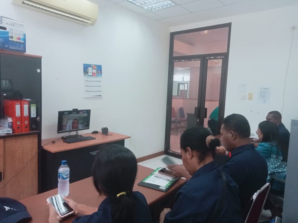 Kegiatan berlangsung di Kabupaten Mimika Pada Tanggal 16 April, Papua Tengah, Melalui Zoom Meting Yang Bertempat Pada Kantor Dinas Sosial.