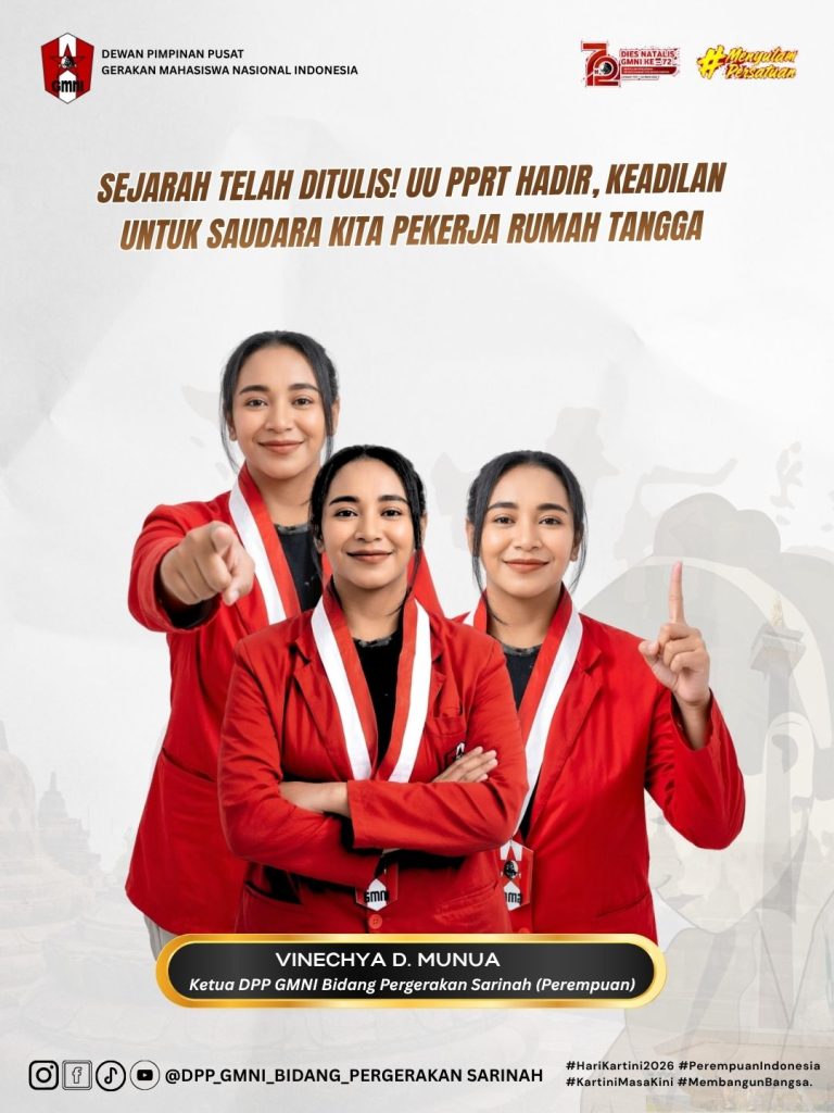 “Hari ini, kita buktikan bahwa selama 22 tahun lamanya, doa dan perjuangan jutaan rakyat tidak sia-sia. Bagi GMNI khususnya Bidang Pergerakan Sarinah, UU PPRT adalah wujud nyata dari cita-cita Keadilan Sosial.