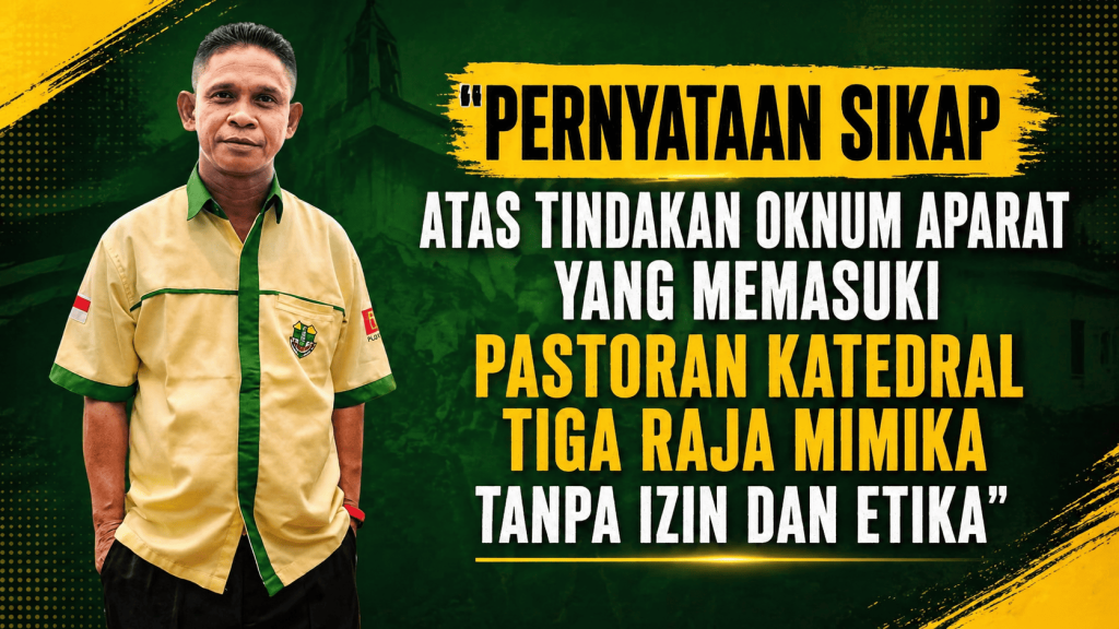TIMIKA, 28 April 2026 – Pemuda Katolik Komisariat Cabang (Komcab) Mimika menyatakan keprihatinan mendalam dan mengecam keras tindakan oknum aparat keamanan yang diduga masuk ke dalam lingkungan Pastoran Gereja Katedral Tiga Raja Mimika tanpa mengindahkan etika, kesantunan, serta prosedur yang berlaku.
