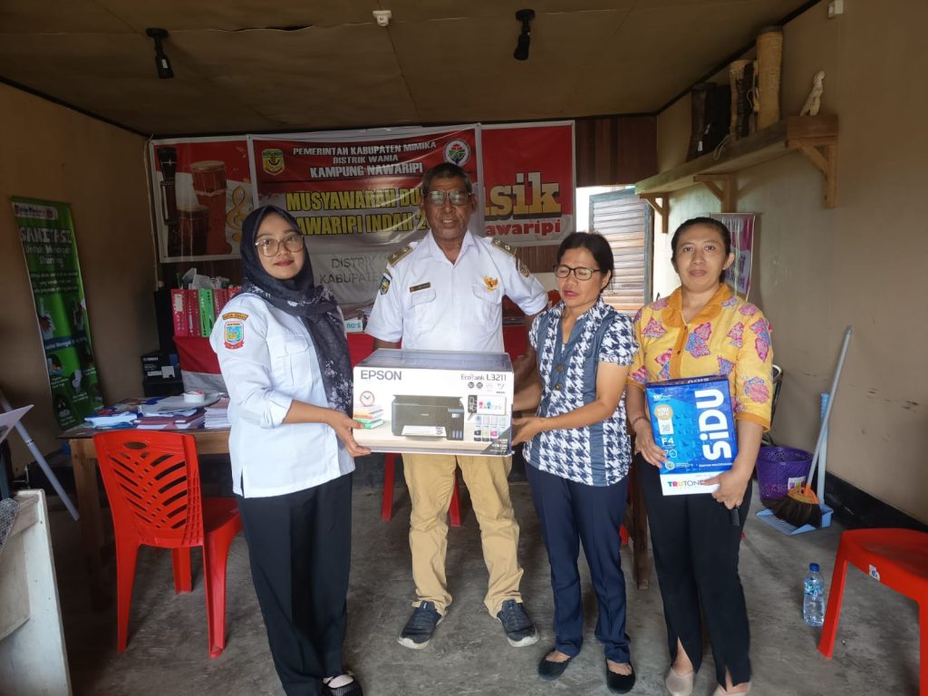 TK dan Pendidikan Usia Dini (PAUD) Merah Putih menerima bantuan satu unit printer bermerk Epson dan alat tulis berupa kertas satu rim dari Pemerintah Kampung Nawaripi, pada Rabu (29/4/2026) di Sanggar Merah Putih.