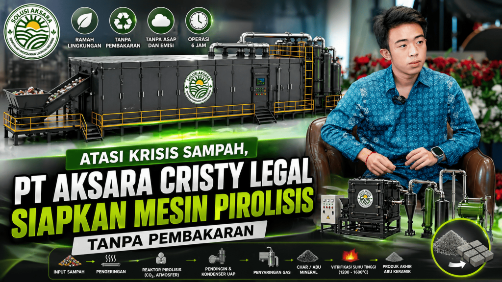 DENPASAR – PT Aksara Cristy Legal melalui unit inovasi teknologinya, MADEHIROKI SOLUSI AKSARA, memperkenalkan konsep mesin pirolisis modern untuk mengolah sampah tanpa proses pembakaran langsung.