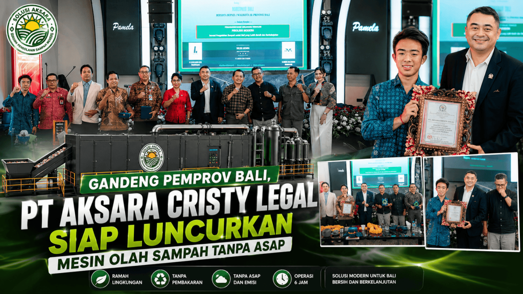 DENPASAR – PT Aksara Cristy Legal melalui unit inovasi MADEHIROKII SOLUSI AKSARA menyampaikan apresiasi atas dukungan penuh Pemerintah Provinsi Bali dalam penyelenggaraan acara peluncuran teknologi mesin pengolahan sampah tanpa asap.
